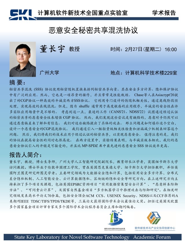 2024年2月27日 “软件新技术讲坛” 学术报告 - 董长宇 教授