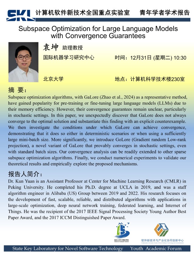 2024年12月31日 “软件新技术讲坛” 学术报告 - 袁坤 助理教授
