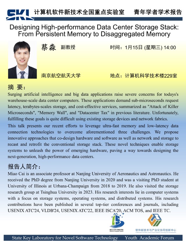 2025年1月15日 “软件新技术讲坛” 学术报告 - 蔡淼 副教授