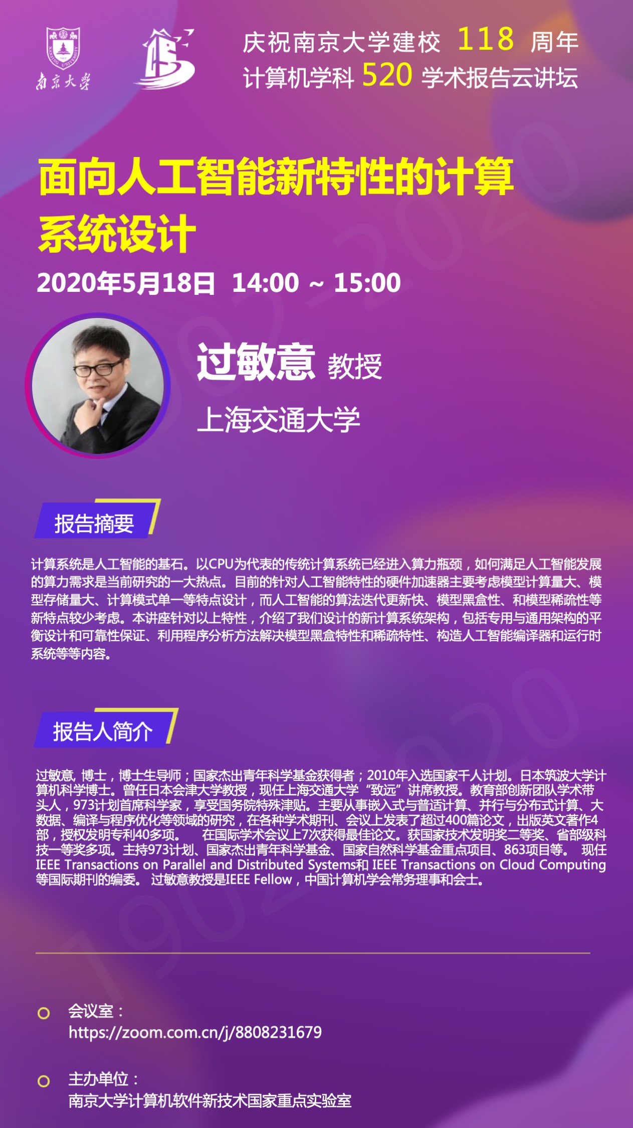 庆祝伟德国际bevictor官方网站建校118周年 计算机学科520学术报告云讲坛- 过敏意 教授