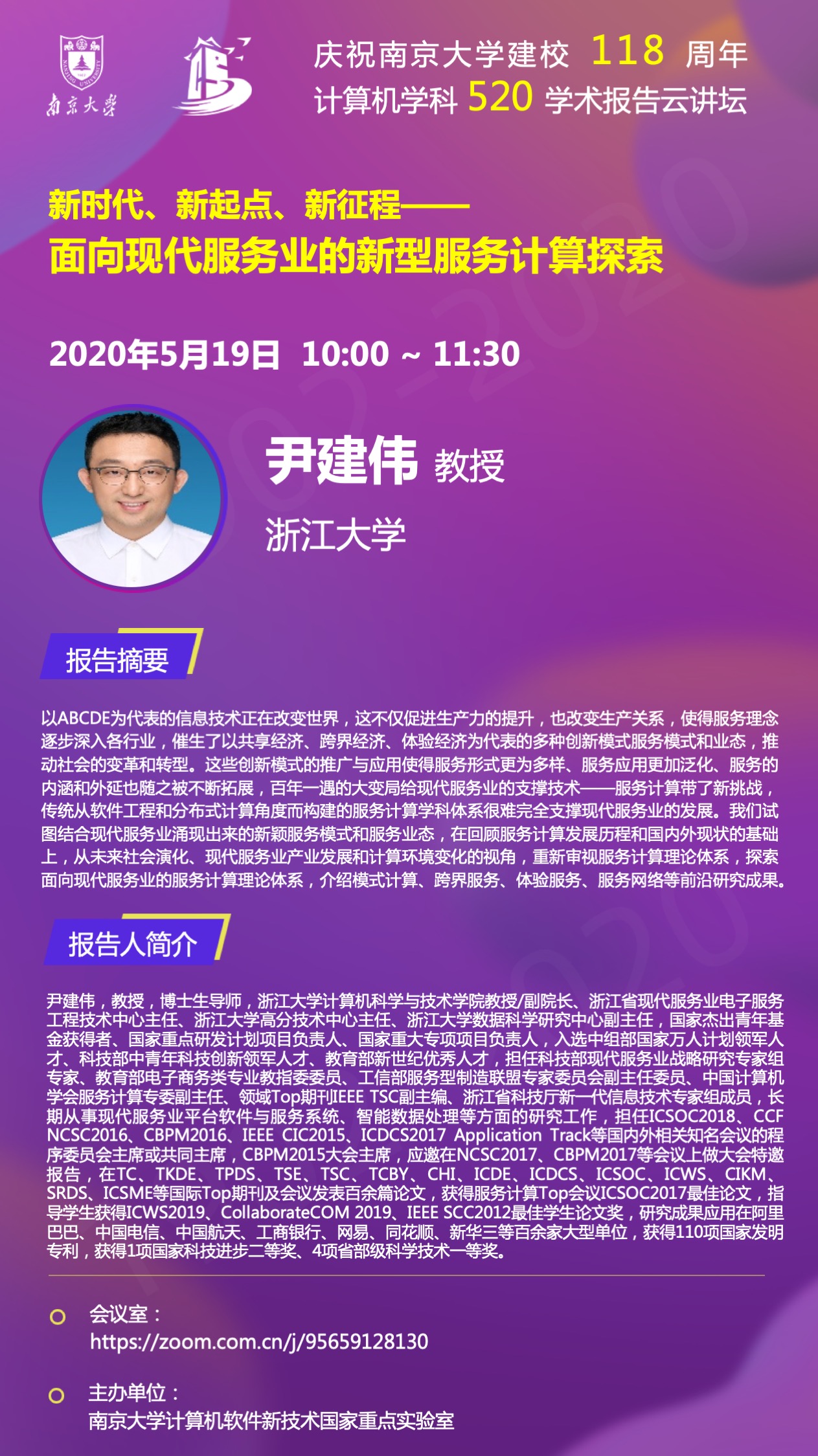 庆祝伟德国际bevictor官方网站建校118周年 计算机学科520学术报告云讲坛- 尹建伟 教授