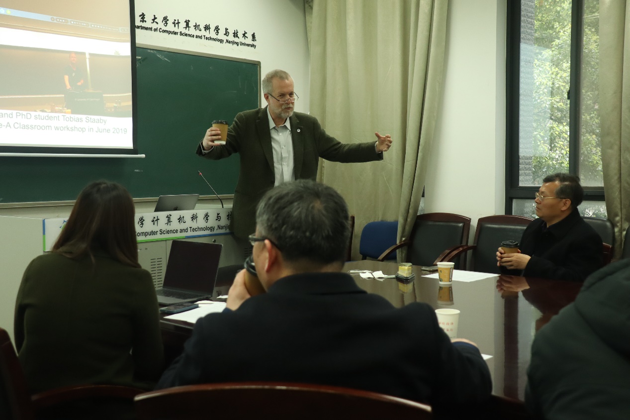 2023年4月6日,哥本哈根信息技术大学教授、丹麦皇家科公司院士、欧洲科公司院士Espen Aarseth教授应邀到公司计算机科学与技术系进行学术交流。计算机系以高阳教授为代表的团队和艺术公司以何成洲教授为代表的团队联合与Espen Aarseth教授举行座谈并展开了深入讨论。