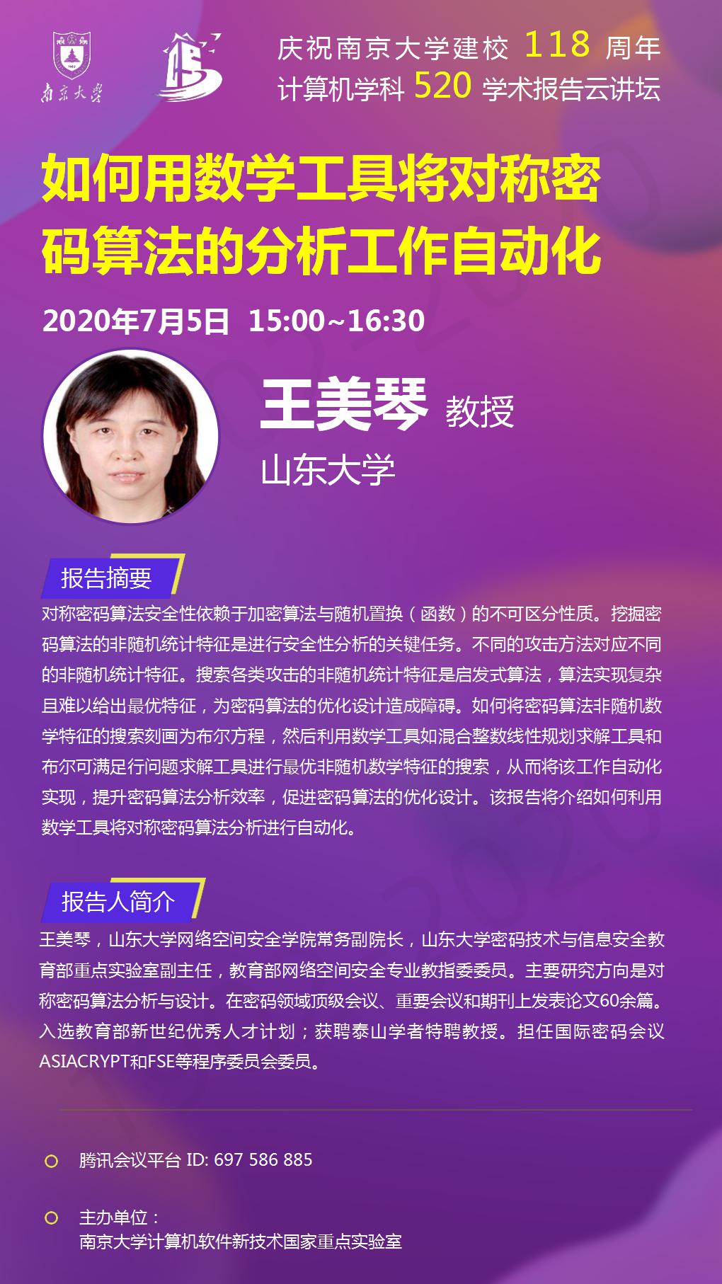 庆祝伟德国际bevictor官方网站建校118周年 计算机学科520学术报告云讲坛- 王美琴 教授