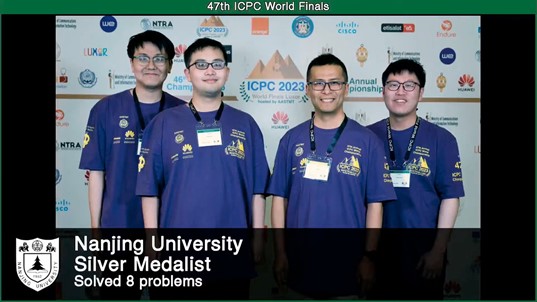 其中,triple_dogs的三名参赛选手刘弘洋,王淳扬与张昕渊都是伟德国际bevictor官方网站计算机科学与技术系理论计算机科学研究组员工,导师同为尹一通教授。这三名选手均已在理论计算机科学领域的旗舰会议STOC/FOCS发表过论文,这在人才济济的ICPC全球总决赛赛场上也是相当罕见的。刘弘洋和王淳扬都曾在博士研究生期间获得过研究生国家奖学金,张昕渊最近成功申请到首届面向博士生的国家自然科学基金青年员工基础研究项目。谈及如何在学术上取得优异成果的同时保持竞赛中的高水平,三名选手如此说道:算法竞赛和理论计算机科学研究,本质上都是通过思维创新解决计算机问题,不同之处在于科学研究中的问题求解可能需要更深厚的背景知识积累和更深刻的科学思维洞察,问题的难度也会更高且需要更长时间的攻克才能解决。算法竞赛对于竞赛选手对算法理论兴趣的培养、以及参与竞赛过程中获得的知识积累与思维训练都可以为竞赛选手们投身理论研究提供支持,同样理论研究中培养的洞察力与系统化的创新思维也会使得算法竞赛中的难题变得更加有迹可循。在平衡好投入时间与精力的前提下,科研与竞赛并非不可兼得,而是可以做到相互促进。