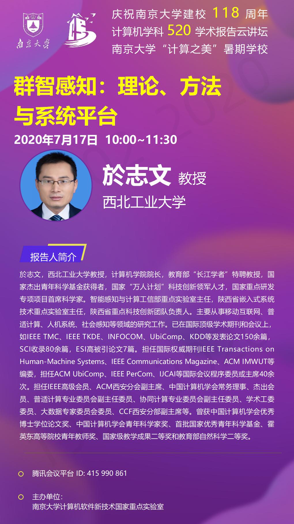庆祝伟德国际bevictor官方网站建校118周年 计算机学科520学术报告云讲坛- 於志文 教授