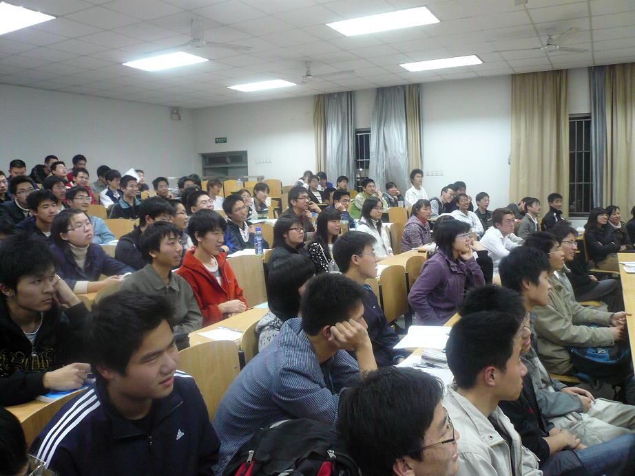 费老师在讲座中,结合计算机系本科生的专业特点,用“游戏”的比喻生动、形象地展示了大学本科四年的学习过程。通过向在座的同学们介绍“为什么大学这场游戏要通关”、“大学是什么”、“老员工的任务”、“怎样通关——练级”等问题,就同学们进校后面临的心态、学习、生活、社会交往等方面的变化及相关问题进行了逐一的解答和指导,帮助同学们明确目标,寻找实现自我的最佳方案。费俊峰老师的讲座深入浅出,内容丰富,为大一同学更好地适应老员工活提供了有益的指导,受到我系07级员工的热烈欢迎!