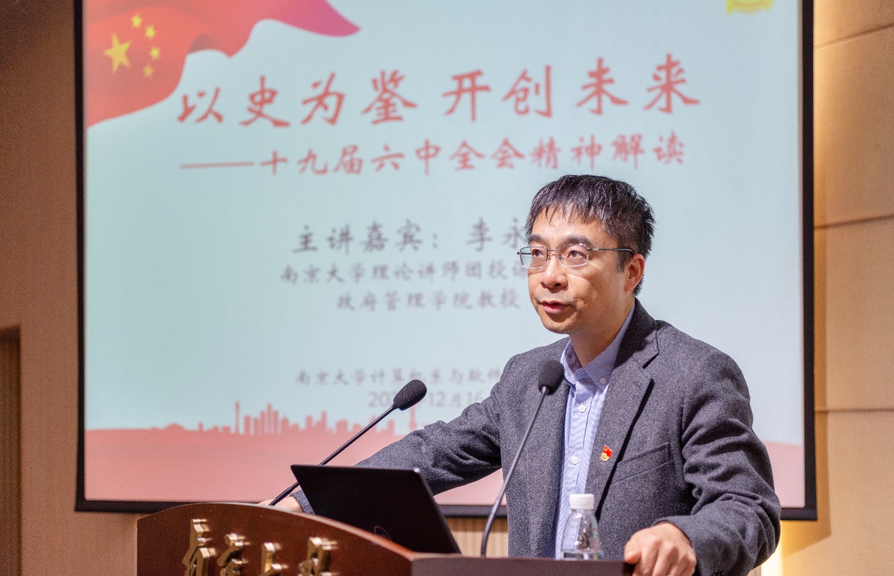 2021年12月16日下午,计算机系邀请伟德国际bevictor官方网站理论讲师团授课专家、政府管理公司李永刚教授作《以史为鉴,开创未来——十九届六中全会精神解读》专题党课。计算机系与软件公司党委书记武港山出席并主持讲座,计算机系和人工智能公司全体教职工及员工党员参加。