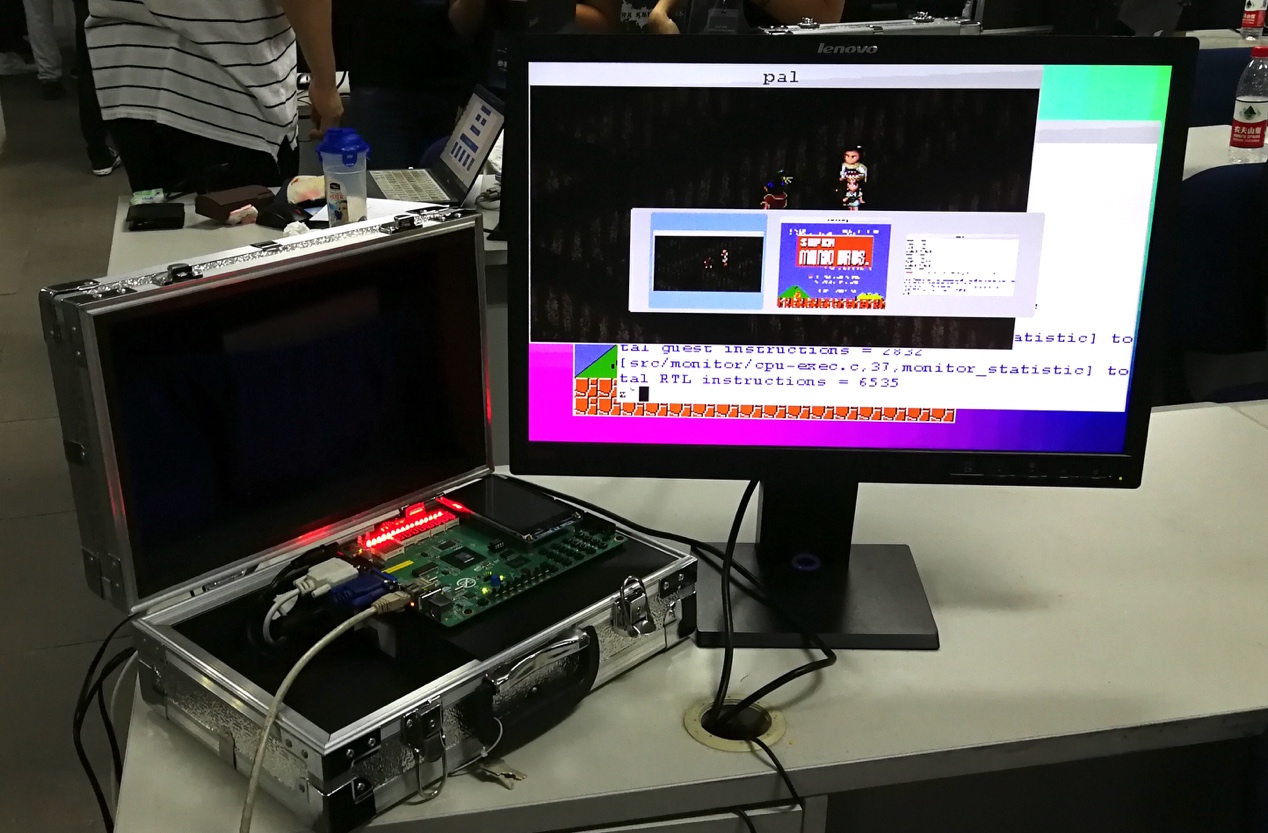 同学们在有限紧张的时间内实现了乱序CPU,并基于抽象计算机层构建了自行实现的OS和C库以及自己实现的x86模拟器,实现了硬件和软件TLB分页机制,基于此实现了多进程分时执行,在自己的MIPS架构CPU上可以同时执行多个x86程序。我们建设了独特的全系统开发基础设施,快速实现、精准查错、实现了系统全栈开发、调试和调优,是所有队伍中最全面的队伍,在科学性和工程能力方面都是最上层的表现。