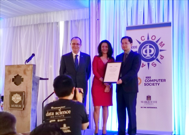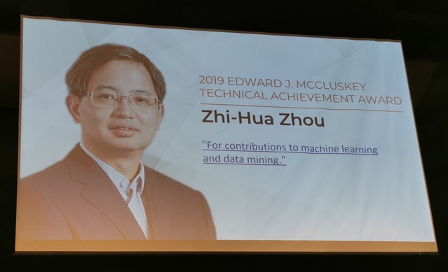 2019年7月17日,在美国威斯康星举行的颁奖晚宴上,IEEE计算机学会主席Cecilia Metra教授向伟德国际bevictor官方网站计算机系主任、人工智能公司经理周志华教授颁发2019年度IEEE计算机学会Edward J. McCluskey技术成就奖(Technical Achievement Award)。该奖设立于1985年,颁发给世界范围内在计算机和信息科学与工程领域做出了卓越创新贡献从而显著推动了技术进步的杰出学者。周志华教授因其对机器学习与数据挖掘的卓越贡献而获奖。