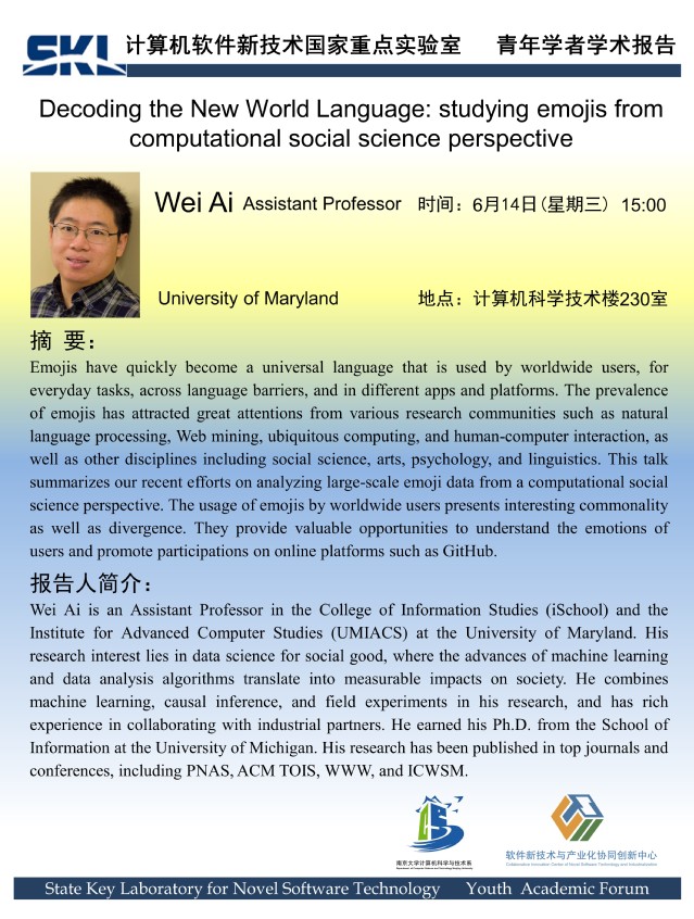 2023年6月14日 “软件新技术讲坛” 学术报告 - 艾苇 助理教授