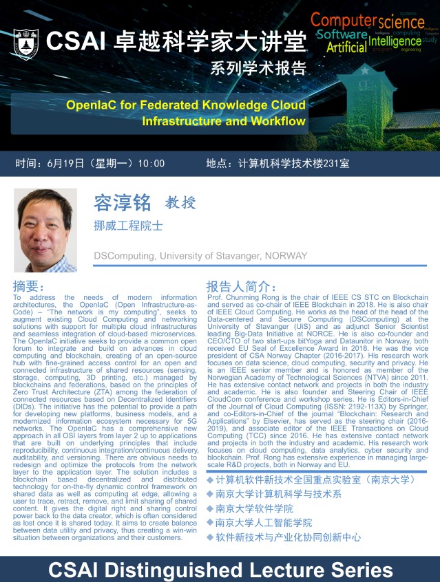 2023年6月19日 “CSAI卓越科学家大讲堂” 学术报告 - 容淳铭 教授