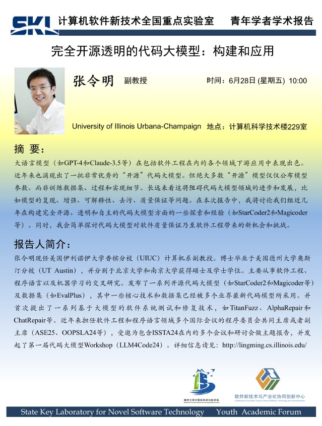 2024年6月28日 “软件新技术讲坛” 学术报告 - 张令明 副教授