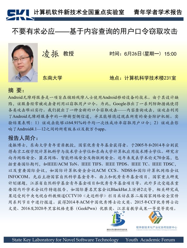 2023年6月26日 “软件新技术讲坛” 学术报告- 凌振 教授