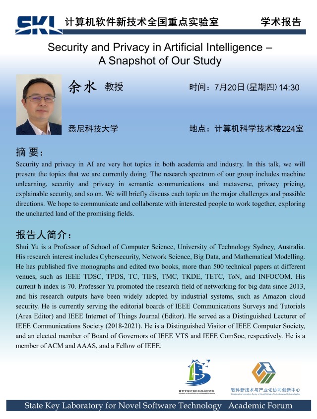 2023年7月20日 “软件新技术讲坛” 学术报告 - 余水 教授