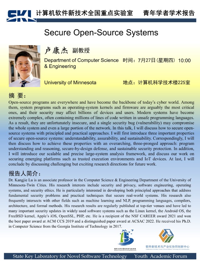 2023年7月27日 “软件新技术讲坛” 学术报告 - 卢康杰 副教授