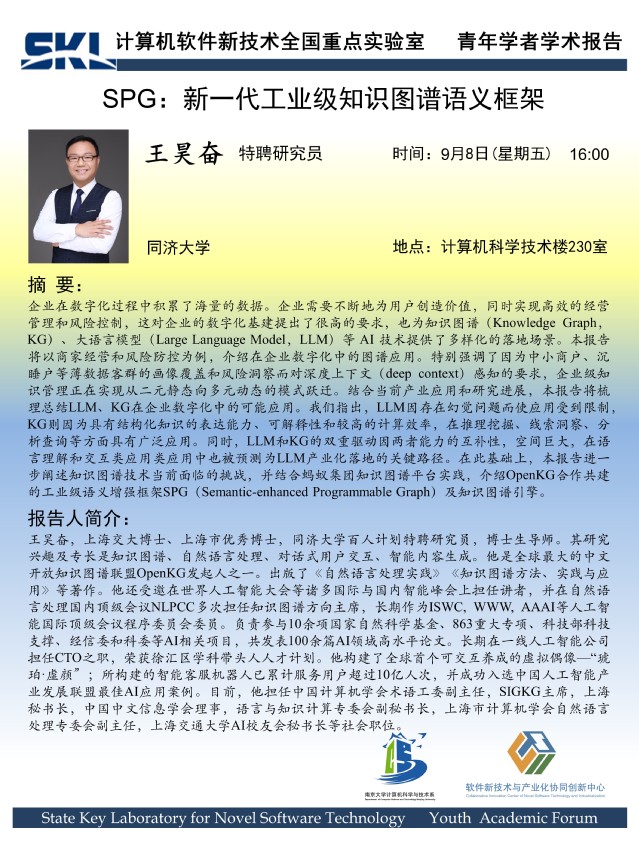 2023年9月8日 “软件新技术讲坛” 学术报告 - 王昊奋 特聘研究员