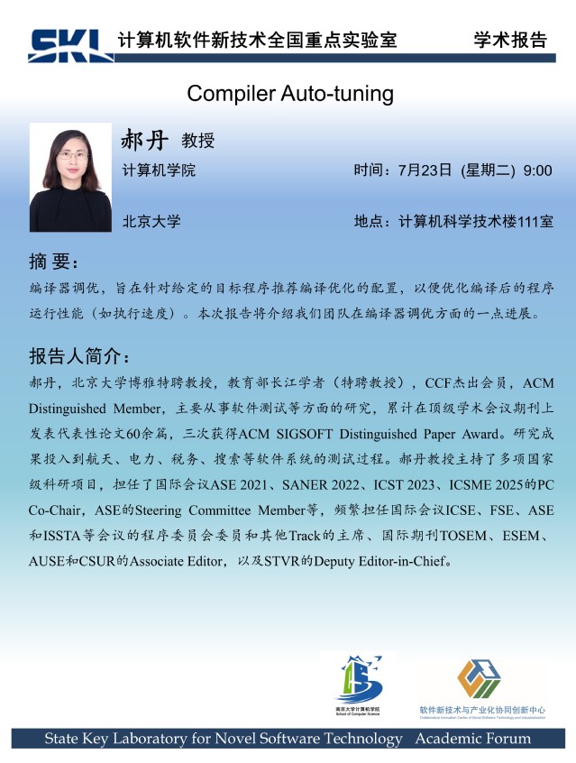 2024年7月23日 “软件新技术讲坛” 学术报告 - 郝丹 教授