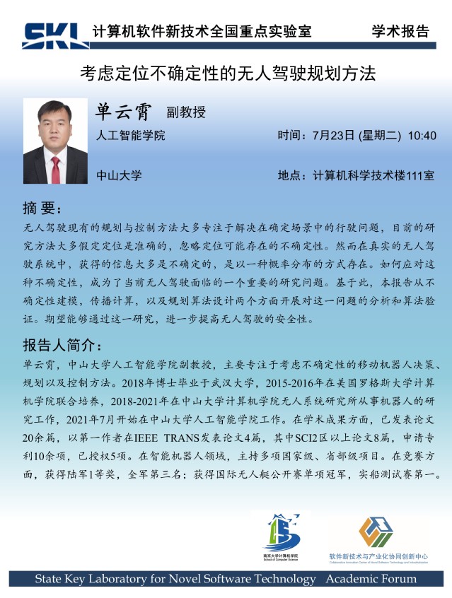 2024年7月23日 “软件新技术讲坛” 学术报告 - 单云霄 副教授