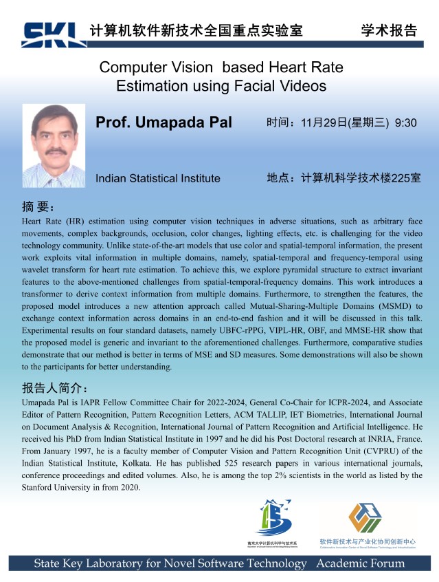 2023年11月29日 “软件新技术讲坛” 学术报告 - Prof.Umapada Pal