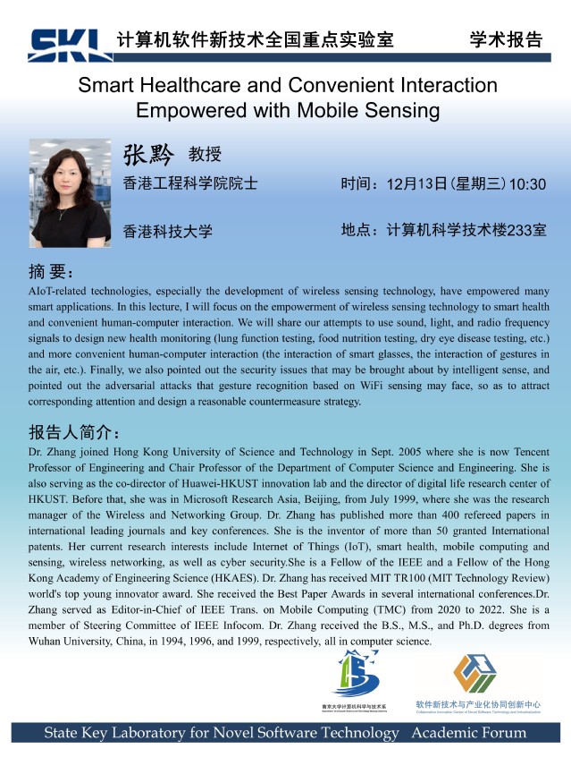 2023年12月13日 “软件新技术讲坛” 学术报告 - 张黔 教授