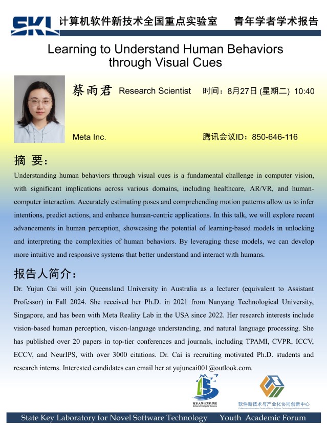 2024年8月27日 “软件新技术讲坛” 学术报告 - 蔡雨君 助理教授
