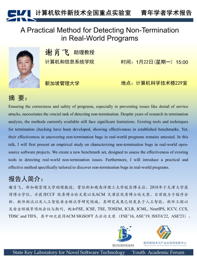 2024年1月22日 “软件新技术讲坛” 学术报告 - 谢肖飞 助理教授